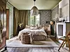 Det store klesskapet i mørkbeiset eik gir tyngde og sjel til hele rommet.