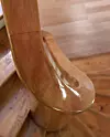 Men selv om den originale trappen fikk stå, er den knapt til å kjenne igjen. Trinnene ble slipt ned og påført kvistlakk - ikke bare på kvistene, men på plankene i sin helhet. Deretter fulgte tre lag med halvblank klarlakk. Slik ble underlaget særlig slitesterkt og rede til å utstå en trebarnfamilies skytteltrafikk, og treverket antok en blank, gyllen lød.