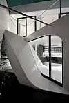 Formen på huset er som et klippet, åpnet og bøyd Möbius bånd som er vridd til formen av et 8-tall.