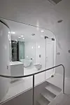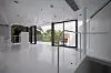 Overflaten både inne og ute har et enhetlig preg. Overflaten kan se sømløs ut fordi den flyter fra fasade til tak, til gulv og innvendig vegg.