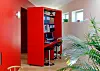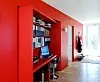Den rødmalte kjernen er et pulserende hjerte midt i huset, med lekerom og hjemmekontor på hjul.