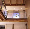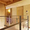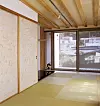 Det er brukt finér i forskjellige farger på gulvet i noen rom, mens det i andre er brukt tatami, en tradisjonelt japansk gulvmatte laget av strå.