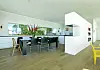 Husets planløsning er basert på åpne løsninger. Det er heller ikke stappet med møbler. Her skal huset være som et møbel i seg selv.