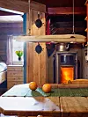 Sengene i annekset er selvsnekret av tømmer hugget i naboskogen.