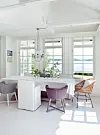 Det gjør også blåfargen i inngangspartiet. Ellers er alt malt i nøytralt hvitt inne, mens eksteriøret er beholdt grått med hvite karmer. Nettopp det lyse, landlige som kjennetegner stilen.