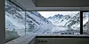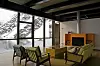 Store deler av fronten mot innsjøen er i glass, så utsikten blir overveldende også når man er inne.