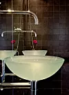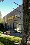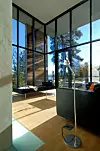 Østfasaden åpner seg med store glassfelter mot hovedstaden på den andre siden av fjorden. Smekre vindusprofiler gjør sitt til at hele den framre halvdel av huset oppleves som transparent. Og med utsikt fra alle oppholdsrom forsterkes frihetsfølelsen i huset ytterligere.