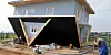 I følge Reuters er det ikke uproblematisk å besøke det nyåpnede opp/ned huset i Trassenheide. Huset, som er stort nok til å romme en liten familie, er designet av polske Klausdiusz Golos og Sebastian Mikiciuk for Edutainment exhibition company og har absolutt alt av interiør på hodet. Stoler, tepper og interiørdetaljer er festet til det vi opplever som "taket".