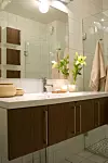 Se så flott bad! Baderomsinnredningen er fra Block og er kjøpt via rørleggerfirmaet Jørstad på Lillehammer.Foto: Trude Lindland