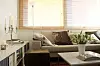 Bente handler overalt så lenge tingene er fine. Putene i kuskinn i sofaen er kjøpt på Smart Club. Det er også den svarte puffen. Den kostet slikk og ingenting, men hvem kan se det? Porselensvasen på bordet er designet av Wik og Walsøe og koster 895 kroner hos Palma.Foto: Trude Lindland