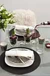 Dekket til fest. Hvitt sauseskinn på stolene skaper en lun og hyggelig atmosfære ¿ og liver opp det ellers stramme uttrykket.Foto: Trude Lindland