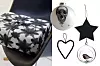 Gavepapir, 70 x 100 cm, kr 29 pr. ark og sort hyssing, kr 39, begge fra Bolina, porselenskule med kunst av Hin, I´m no Angel, kr 190, ø 9 cm, reikokaneko.co.uk, metallstjerne med tavlemaling, 27 cm (inkl oppheng), kr 40, Kid Interiør, hjerte i treperler, 25 cm høyt, kr 89, Bloomingville og glasskule med dompapp inni, ø 8 cm, kr 50, marksandspencer.com.FOTO: Yvonne Wilhelmsen og produsentene