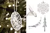 Snøblonde i porselen, kr 90, Shishi, snøkrystall med glitter, ø: 10 cm, kr 75 for 6 stk., zarahome.com, papirfugl, 11 cm lang, kr 300 for boks med 6 stk., House Doctor, gevir til å henge, 11,5 cm lang, kr 29, Kremmerhuset, liten gran i sølv med fløyelsbånd, kr 39, Åhléns.FOTO: Yvonne Wilhelmsen og produsentene