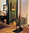 - Luftspyling av glasset er en fiffig detalj på mange ovner. Her holdes glasset rent for sotpartikler på grunn av de riktige luftstrømmer i ovnen.