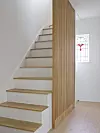 Ny trapp. Arkitektene som Mari og Neil engasjerte, foreslo trappeløsningen i eik. Mari falt pladask. – Drar du fingrene langs den når du går opp trappen, spiller den en slags melodi, sier hun. (Journalisten har testet og vet det er sant.)Ragnar Hartvig