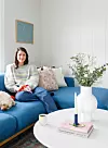 – Samboeren min hadde overraskende god interiørsmak da vi først møttes. På tredje date spurte jeg hva slags sofa han hadde, med frykt for at svaret var svart skinnsofa. Men da han svarte en blå Bolia-sofa, ble jeg positivt overrasket! Han hadde også det kule surfebildet i stuen, siden han har surfing som hobby, og egentlig all kunsten vi har, forteller Lene med et smil. Så valgene i huset har vært sammen om.