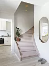 På visningen i huset var trappen det som kostet Linn-Heidi størst bekymring. Den var kledd i laminat, med hvite gulvlister på hvert trinn, og ingen visste hva som lå under. Det tok 20 timer å pusse seg ned gjennom lag på lag med lim og maling, men til slutt kom det fine treverket frem. Det var litt skummelt å male den igjen, men den rosa trappen er nå noe av det hun er aller mest fornøyd med. – Den gir så god energi!Filippa Tredal