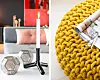 DETALJER MED PERSONLIGHET: Lysestake fra Expo Nova og telysholdere Etch fra Tom Dixon, Est Design. SPREKE ELEMENTER: Stor strikkepuff, Urchin Pouf, design: Christien