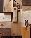 Bare ÉN til. Københavns Snedkerier kjent for sine vakre garderobeog kjøkkenskap og for sine solide håndverksmøbler. Fra sin nyåpnede nett-butikk selger de også trefjøler i et utall størrelser og tresorter. Signaturen, lærstroppen, som er slisset inn i treet, er detaljen som gjør at du ønsker deg hele kolleksjonen, priser fra kr 947, theshopofthenew.com.Produsenten