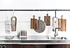 På rad og rekke. En rundstokk av tre eller metall er velegnet for å henge opp alle kjøkkenets fjøler. Variasjon i form, tresorter og størrelser er smart om du er opptatt av at flere enn deg skal huske hvilke skjærebrett som skal brukes til hva. Alle skjærefjølene på dette bildet er fra HK Living. For å finne en forhandler nær deg, gå inn på hkliving.nl eller den norske agenten på bessagentur.no.Produsenten