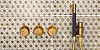 GLAMORØST: De gylne flisene heter Komon 11/300x300r, og koster fra kr 4550 pr kvm, madeamano.com. Se hvor fine de er sammen med armatur i messing!Foto: Produsent