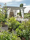 KORTREISTE SMAKER: Grønnsakene i kjøkkenhagen har kort vei fra vokseplassen til spisebordet under pergolaen som Therese ser på som selve hjertet i hagen. Her samler de gjerne gode venner.Jane Ødegaard
