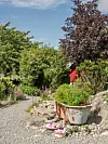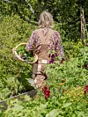 – Til kassene i kjøkkenhagen henter vi stallgjødsel på en gård i nærheten som vi blander inn i jorden. Jeg er også opptatt av å skape en levende hage. Derfor lar jeg være å klippe ned staudene om høsten slik at fuglene kan spise av frøstandene gjennom vinteren og insektene har steder å gjemme seg, sier hun.