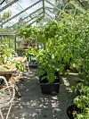 FRODIG: I drivhuset vokser blant annet tomater, auberginer, chili, agurker og druer. Alt som forkultiveres inne flyttes innom før før det plantes ut i hagen.Jane Ødegaard