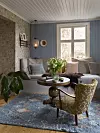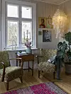 – Jeg liker gamle ting, og synes de kler huset. Da jeg overtok, fant jeg mange gamle skatter her; gjenstander og møbler jeg har pusset opp eller beholdt som de var. Jeg har skaffet mye fint brukt på nettet, og jeg tok med noe av det jeg hadde i leiligheten i Oslo, i tillegg til at jeg har kjøpt litt nytt. For meg er det blandingen av gammelt og nytt som gir huset personlighet. Det skal ikke se ut som et museum, selv om det er over 100 år gammelt.