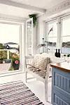 Havets farger gjenspeiles inne med blå og grønne toner. Paret har selv laget mye av det som er både inne og ute. Laila er glad i å samle drivved, som er blitt naturens gave til interiøret.