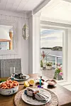 GODVÆRSSTUND: Til tross for at hytta ligger værhardt til, nyter Laila å ha både ytterdøren og verandadøren åpen for å la havbrisen fylle rommene.Kathrine Sørgård