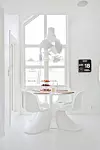 – Jeg liker at folk kommer inn her og ser på den store lyspærelampen over spisebordet, og tenker: «Hæ – hva er det der?». Det skal være litt lek og humor på hjemmebane.