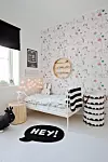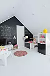 I tredje etasje, der flere av naboene har valgt å ha en loftstue, har Live i stedet fått et ekstra lekerom. Her, omkranset av glade farger, kan hun kose seg. Her har hun til og med fått en egen kjøkkendel hvor hun kan kokkelere.