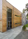 - Det markerte, toetasjers hovedvolumet av huset er i tre og vender mot sør og vest. Alle fellesarealene er plassert i tredelens andre etasje, sier arkitekten.