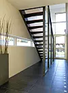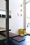 VARM VELKOMST: Inngangspartiet er både himmelhøyt, enkelt og elegant. Robuste materialer preger hele rommet.FOTO: Espen Grønli