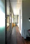 - De store glassflatene åpner bygningen, og tilfører gjennomlys og kontakt mellom rommene. De mange overgangene, passasjene og plassene i og mellom rommene kan oppleves som miljøet i en landsby, sier arkitekten.