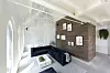 - Faktisk fungerer denne ikke bare som en slags romdeler, men den skjuler også rom og funksjoner som garderobeskap, bod og innebygget kjøkken. I tillegg fungerer den ene av veggene som en slags utstillingsvegg, hvor familien kan vise frem sin store samling moderne kunst.