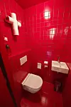 Det mest iøyefallende med den spesielle trappen - som fører opp til messaninen, samt en liten krok hvor man kan søke litt ro og alenetid - er fargen. Knallrødt er en farge som ofte forbindes med synd og lyst, og er kanskje ikke det mest naturlige valget å falle på for bruk i en kirke?