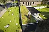 - Denne er integrert i tregjerdet som løper rundt, og har fått en gresskledt tak, som også kan brukes som hage.