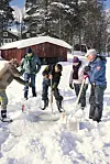 Bålpanna blir flittig brukt i påsken, og da lages det sitteplasser i snøen, med nok plass til alle. Det er til og med noen som slipper seg ned i hullet i isen ved Femundens bredd – for isbading er også en påsketradisjon i Tufsingdalen.