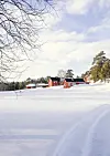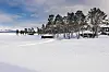 Vi nærmer oss den gamle gården Jonasvollen på vestsiden av Femunden. De fleste med hytte i umiddelbar nærhet slekter til den.