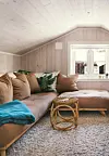 KOSELIG HJØRNE: Her kan den svært aktive familien til Ole Peder slappe godt av. Sofaen fra Karup fungerer også som en seng for to. Kathrine Sørgård