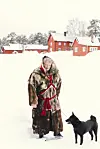 ELGJEGER: Arvid er ivrig elgjeger. Her i en gammel pels han kjøpt brukt. Den varmer godt på kanefart i mange kuldegrader. Hunden Cess er en Norsk elghund.Kathrine Sørgård