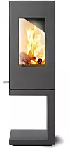 BENK DEG TIL: Vedovnen «Shaker» i stål er en herlig kombinasjon av benk og ildsted. 3000 - 7000 W. Med kort benk, kr 22 950, og med lang benk kr 27 625, Bo Bedre.