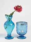BLÅTT I DET GRØNNE: Blå vase, kr 139, og telysholder, kr 75, Verket Interiør.Foto: Thomas Lie Larsen