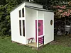 Har du et moderne hus, er kanskje denne lekehytta passende i hagen.