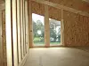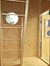 Vinduene er av plexiglass. Målene er 2,4 m bredde, 1,8 m dybde og 2,5 m høyde.