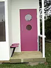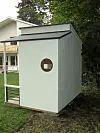 Vil du bruke huset til oppbevaring har det en dør på siden som er bred og kan benyttes til å lempe inn sykler og madrasser.