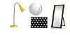LAVBUDSJETT: Bordlampen Kvart fra Ikea, kr. 89. Speilet Vänna med strikker hvor du kan henge opp huskelapper. Fra Ikea, kr. 299. Prikkete dørmatte, 45 x 68 cm fra Ellos, kr 99. Gulvspeil fra Ellos, kr. 549.Foto: Frode Larsen og produsentene