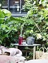 For henne er den lille grøntflekken et fristed, men et sosialt sådan. Hun skaper bohemsk stemning ved å legge ut tepper, puter, skinn og pledd. Og frukthøsten, den har hun et riktig så avslappet forhold til.